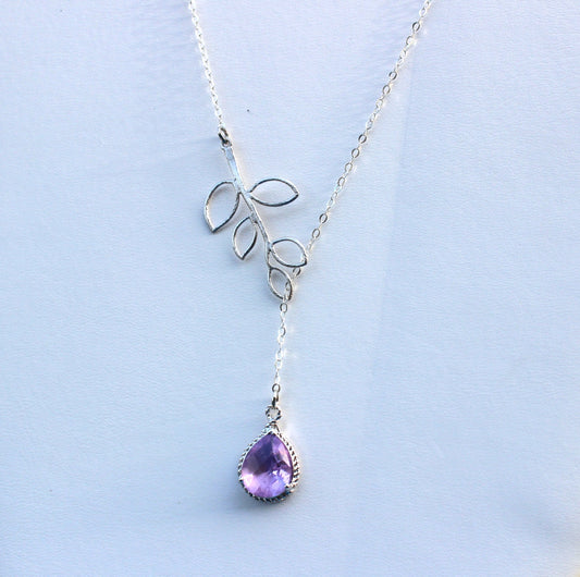 Lavender Lariat Necklace Purple Lilac Lariat Leaf Silver Necklace Bridal Necklace - Bridesmaid Lariat Necklace - Bridesmaid Jewelry Wedding