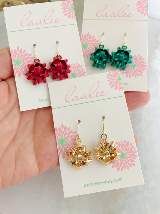 Gold Christmas Bow Earrings