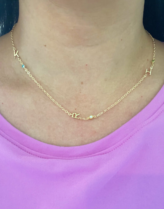 Custom Initials Birthstone Necklace