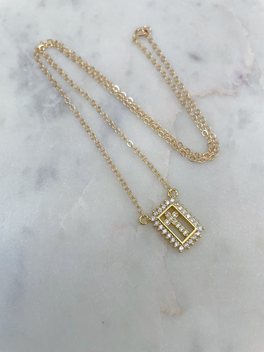 Gold Cross CZ Border Necklace