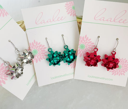 Silver Christmas Bow Earrings