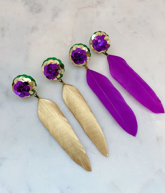 Mardi Gras Feather Earrings