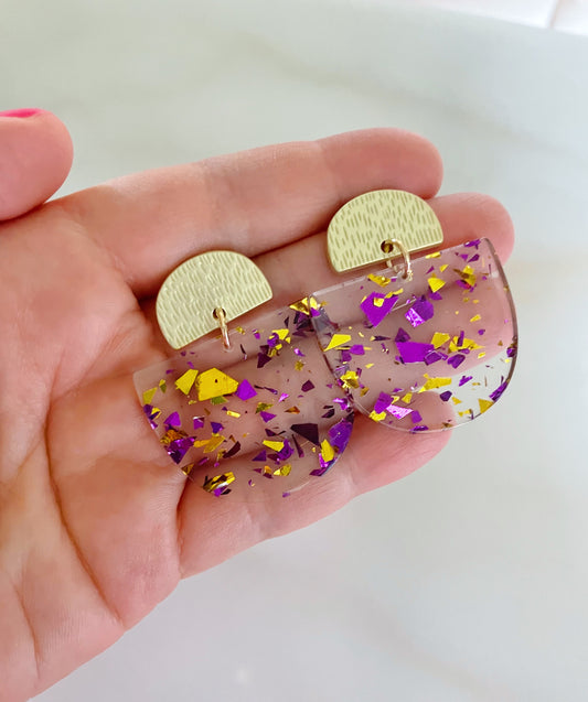 Mardi Gras Half Moon Earrings