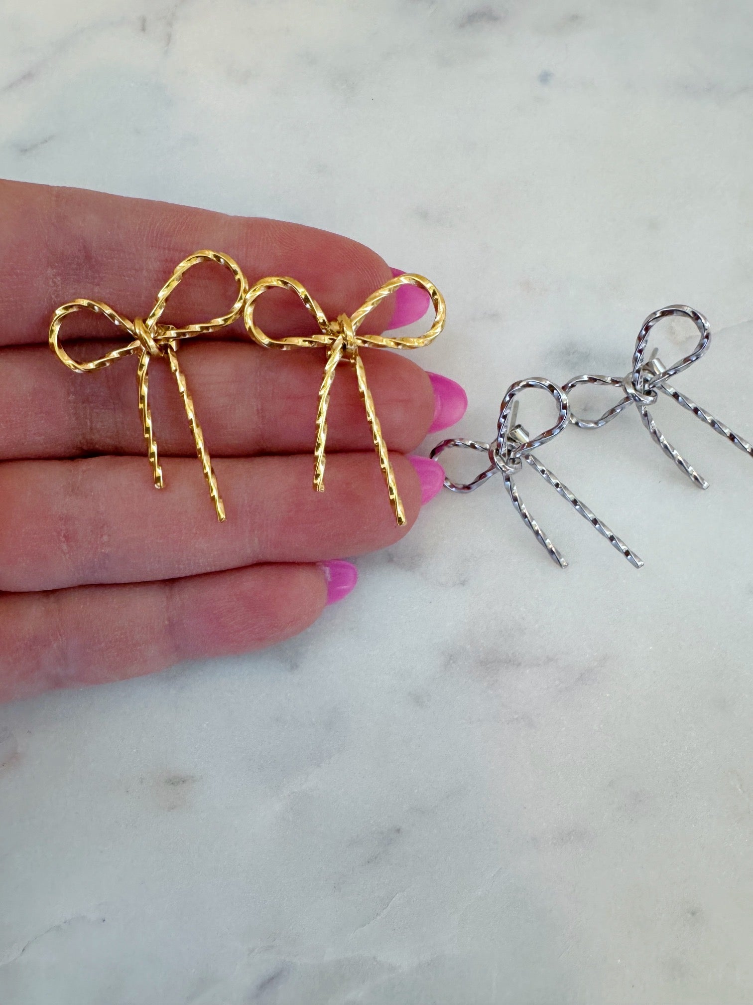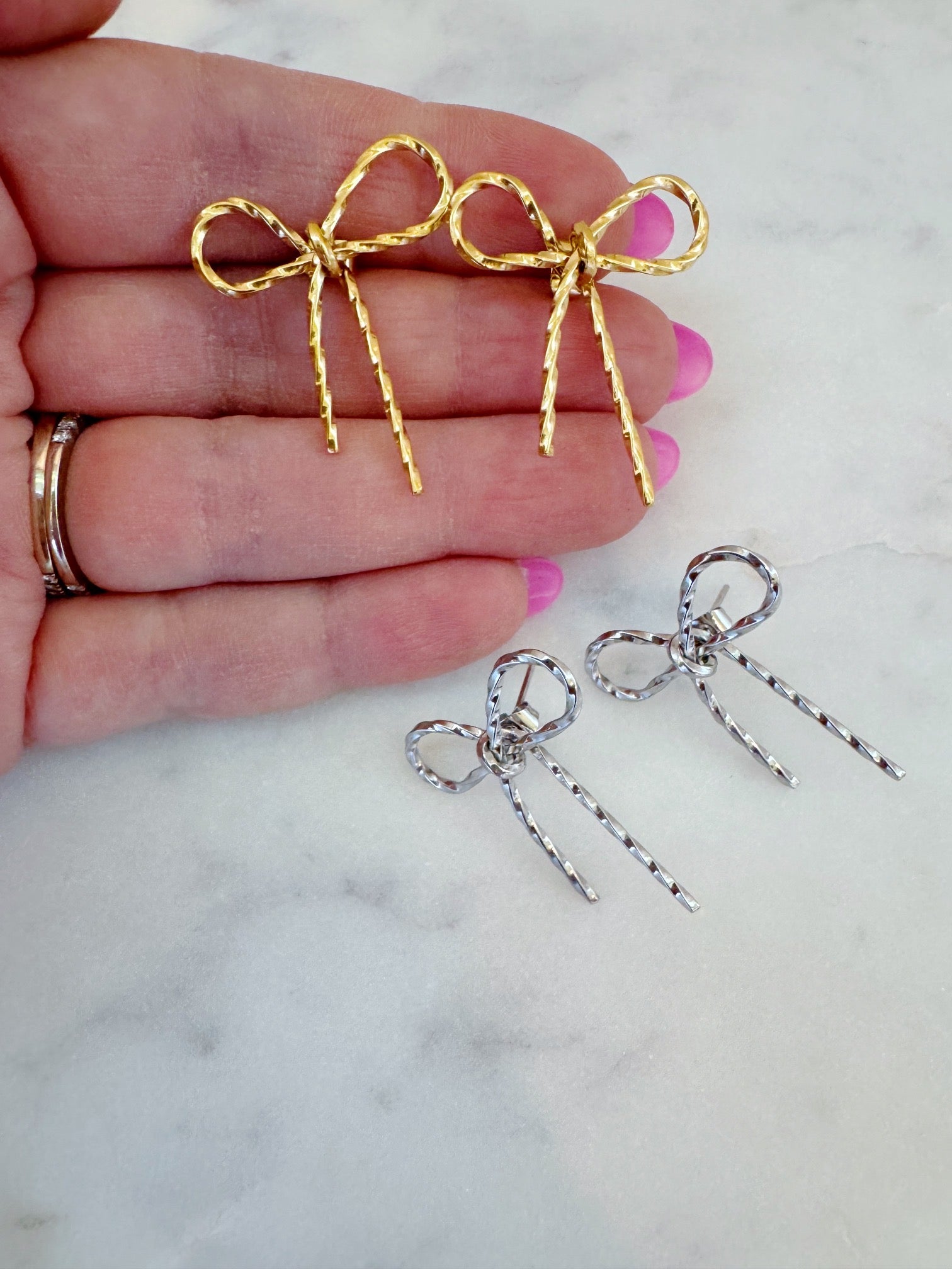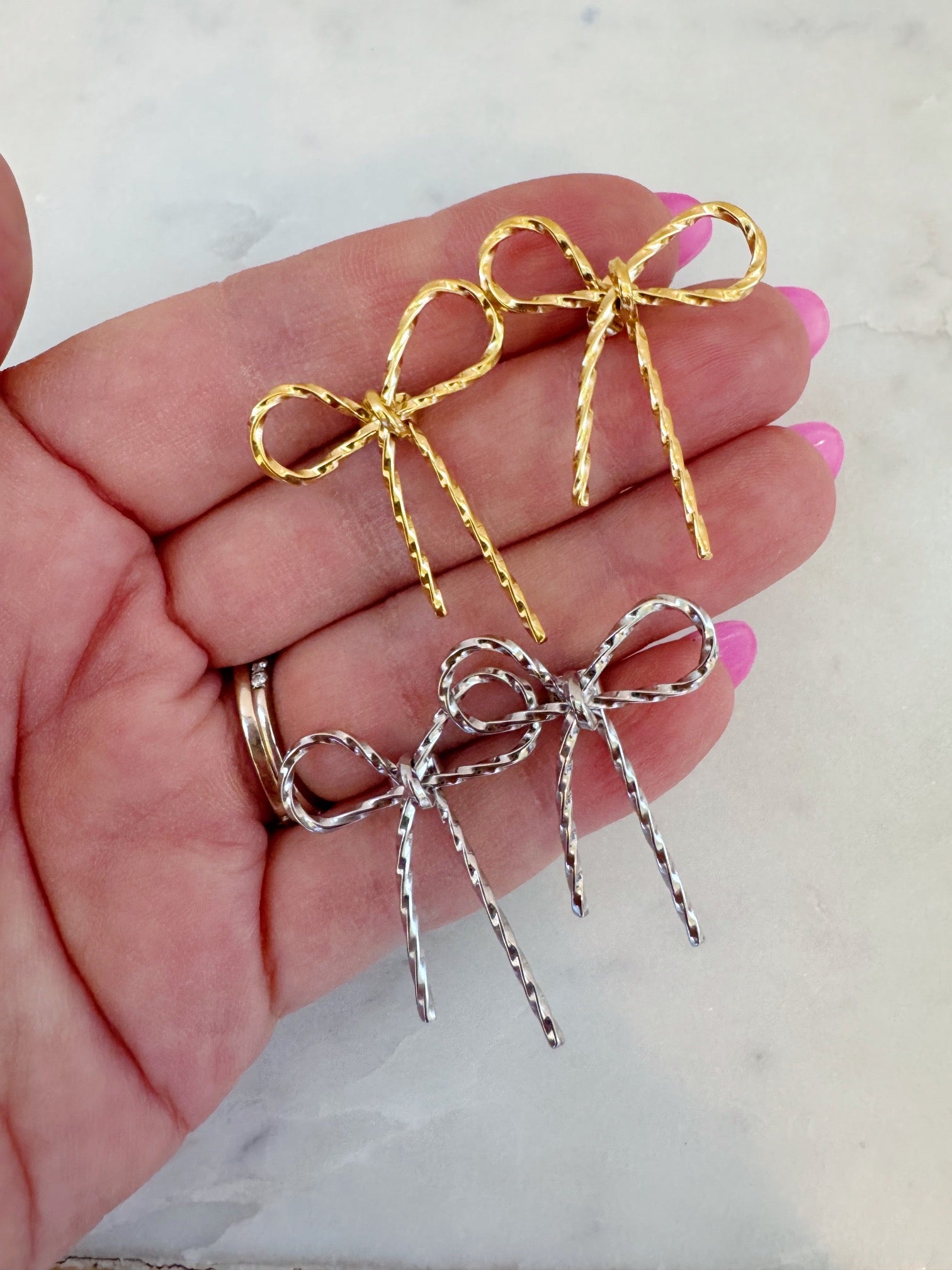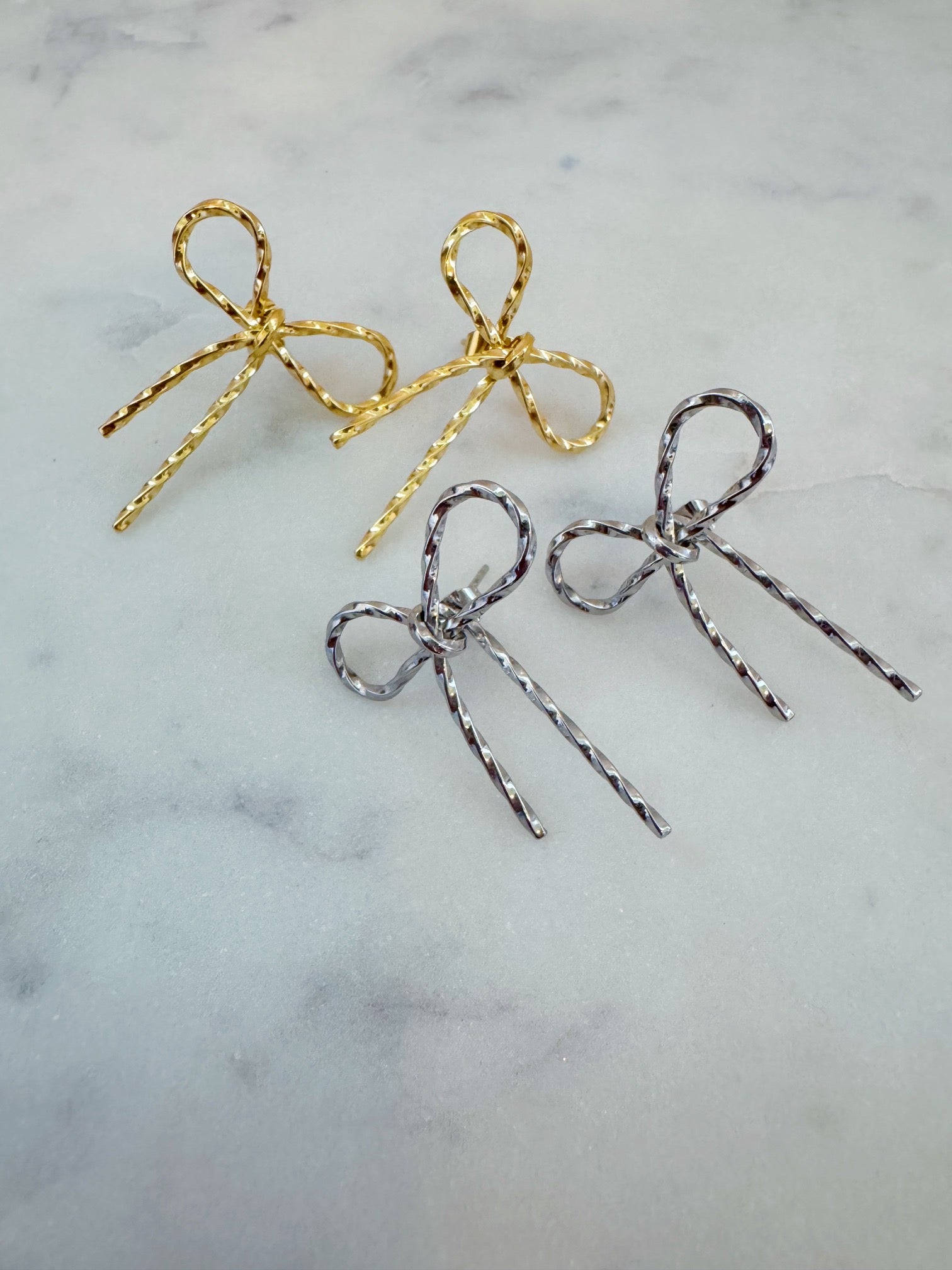 Beautiful and lightweight gold and silver bow earrings! These are stunning and perfect for everyday wear!