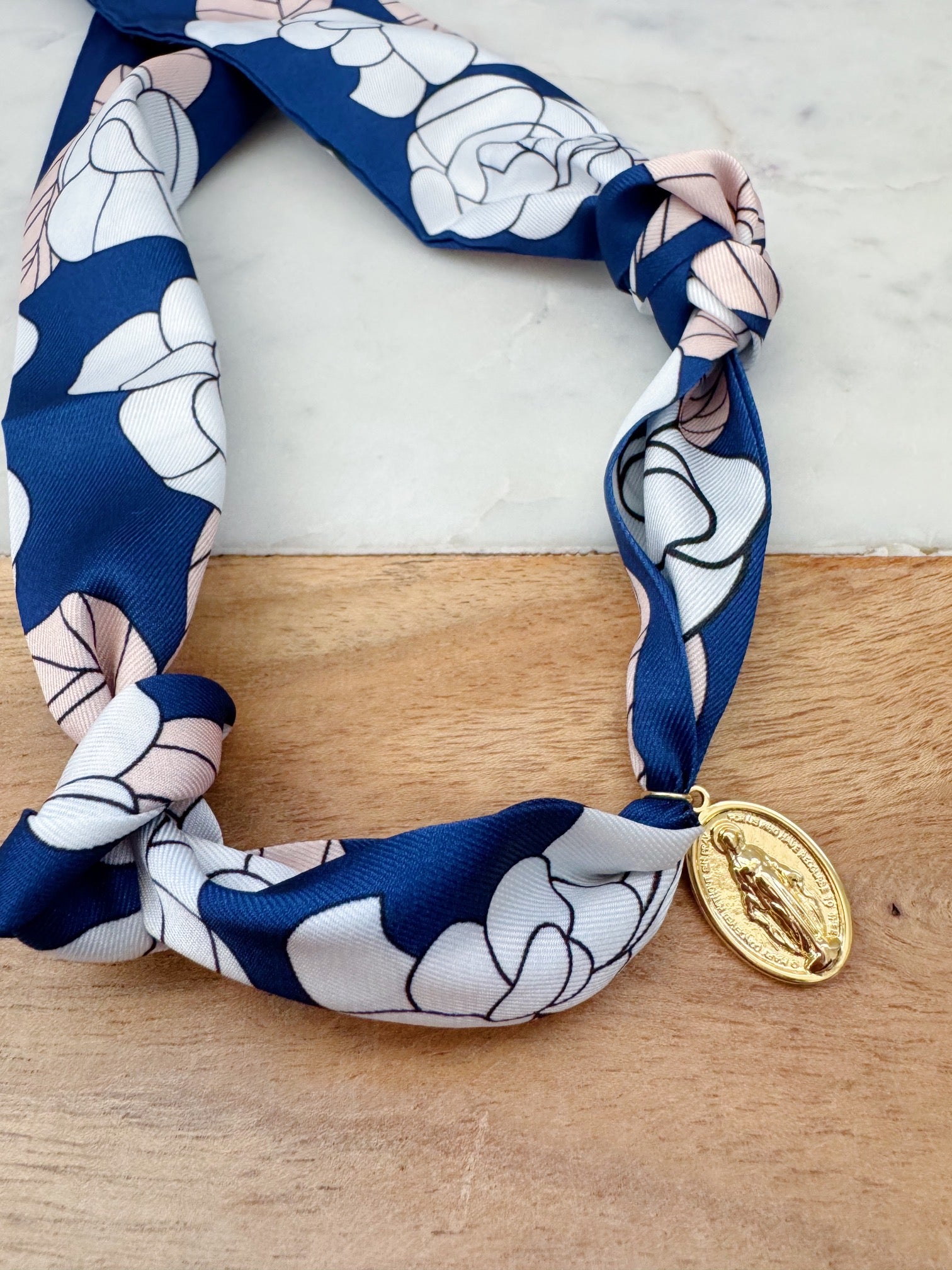 Colorful Scarf Necklace, Religious Jewelry, Miraculous Mary Pendant Scarf Necklace