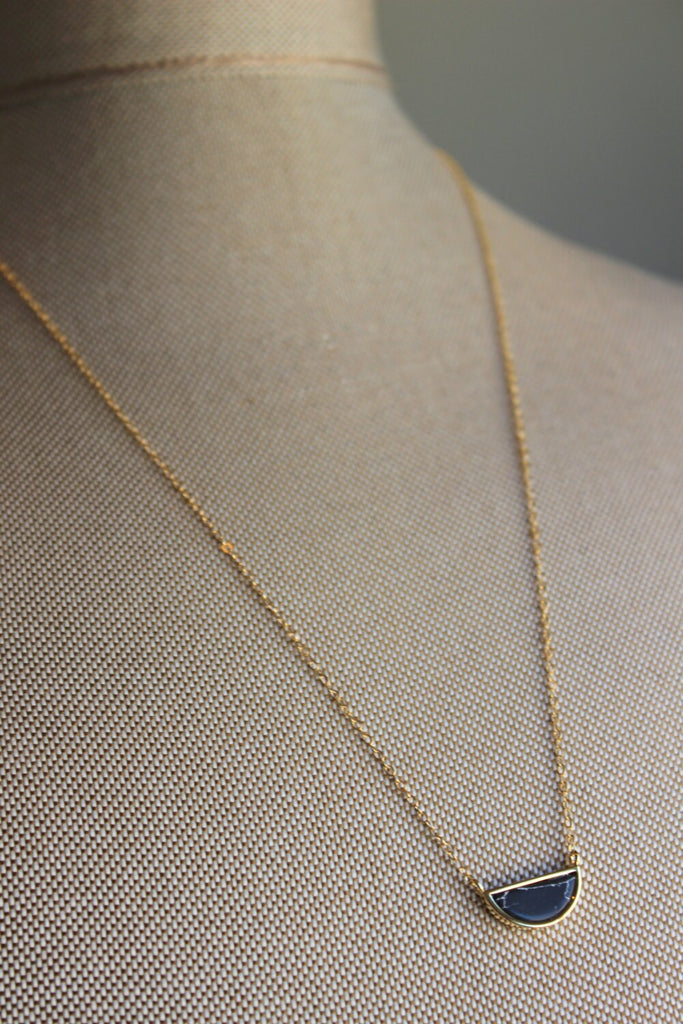 Half Moon Necklace, Howlite Jewelry, Black White Howlite Necklace, Gold Dainty Necklace, Minimalist Necklace, Marble Necklace Stone Jewelry